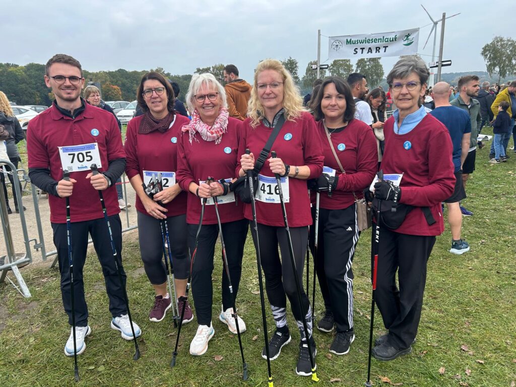 Als Praxis traten wir mit sechs Teilnehmerinnen und Teilnehmern in der Kategorie Walking 5 km an. Die anspruchsvolle Strecke mit ihren Anstiegen meisterten wir dank gekonntem Stockeinsatz, Ausdauer und  jeder Menge guter Laune.